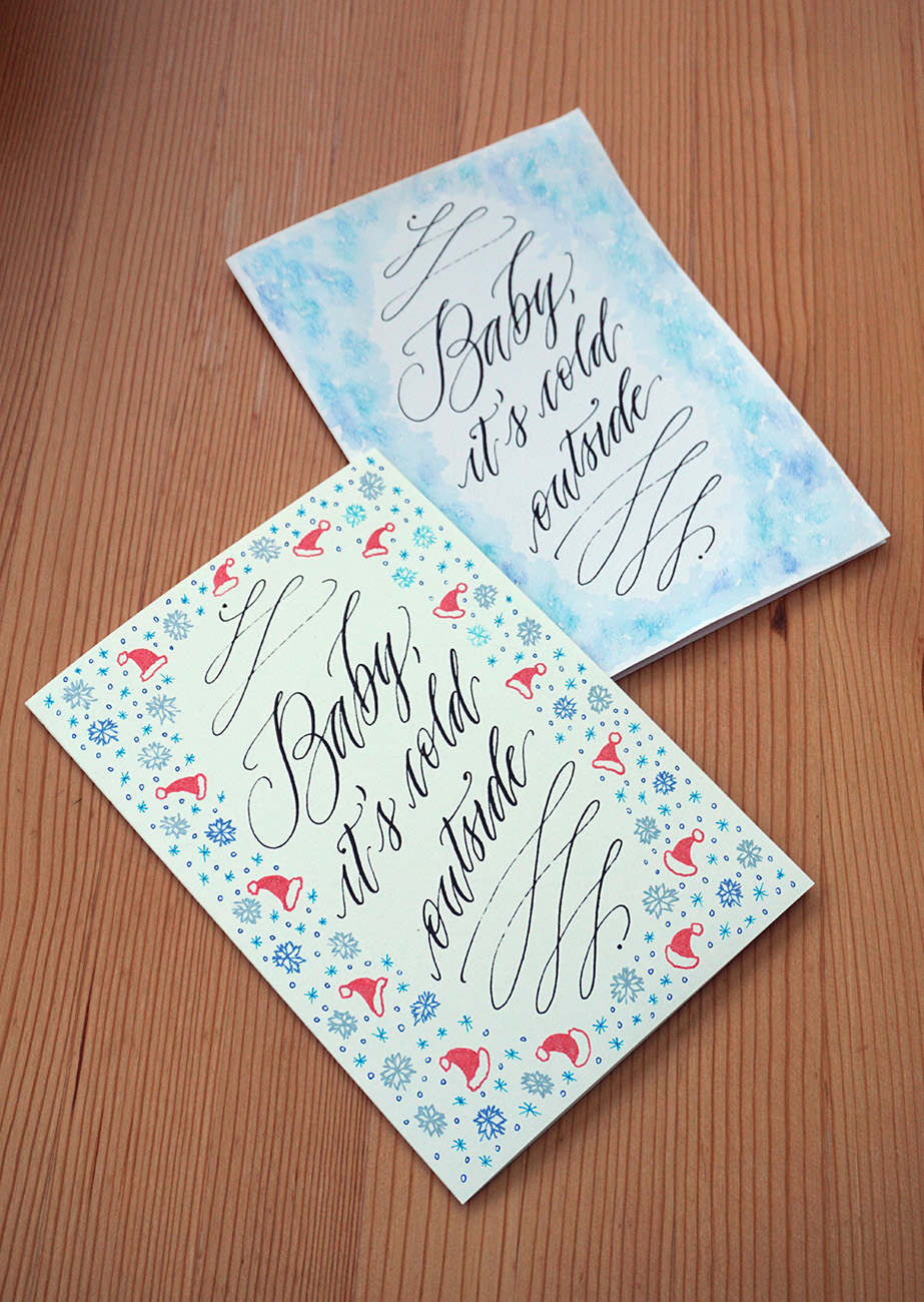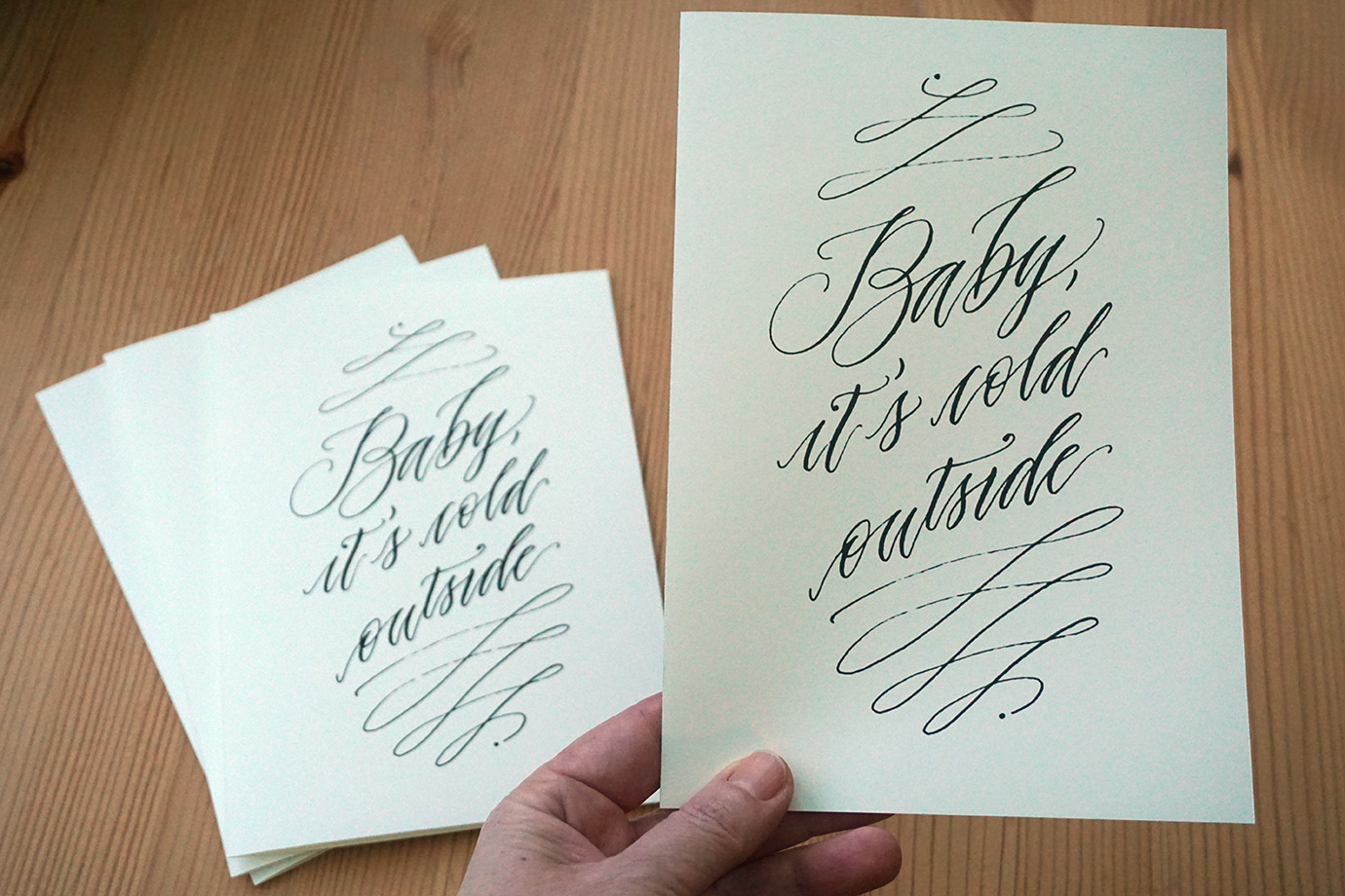 The design had to be feminine and Christmas-like. I did modern calligraphy, digitized them by scanning the pieces in, retouched them and finally, I generated downloadable (and printable) files.